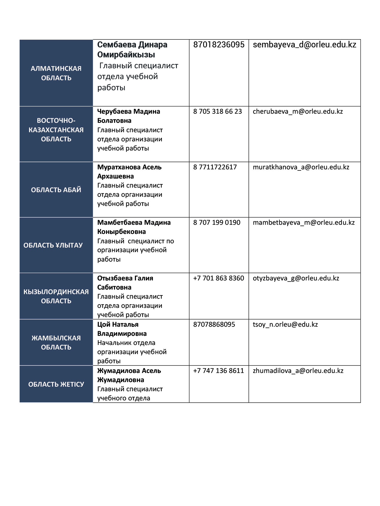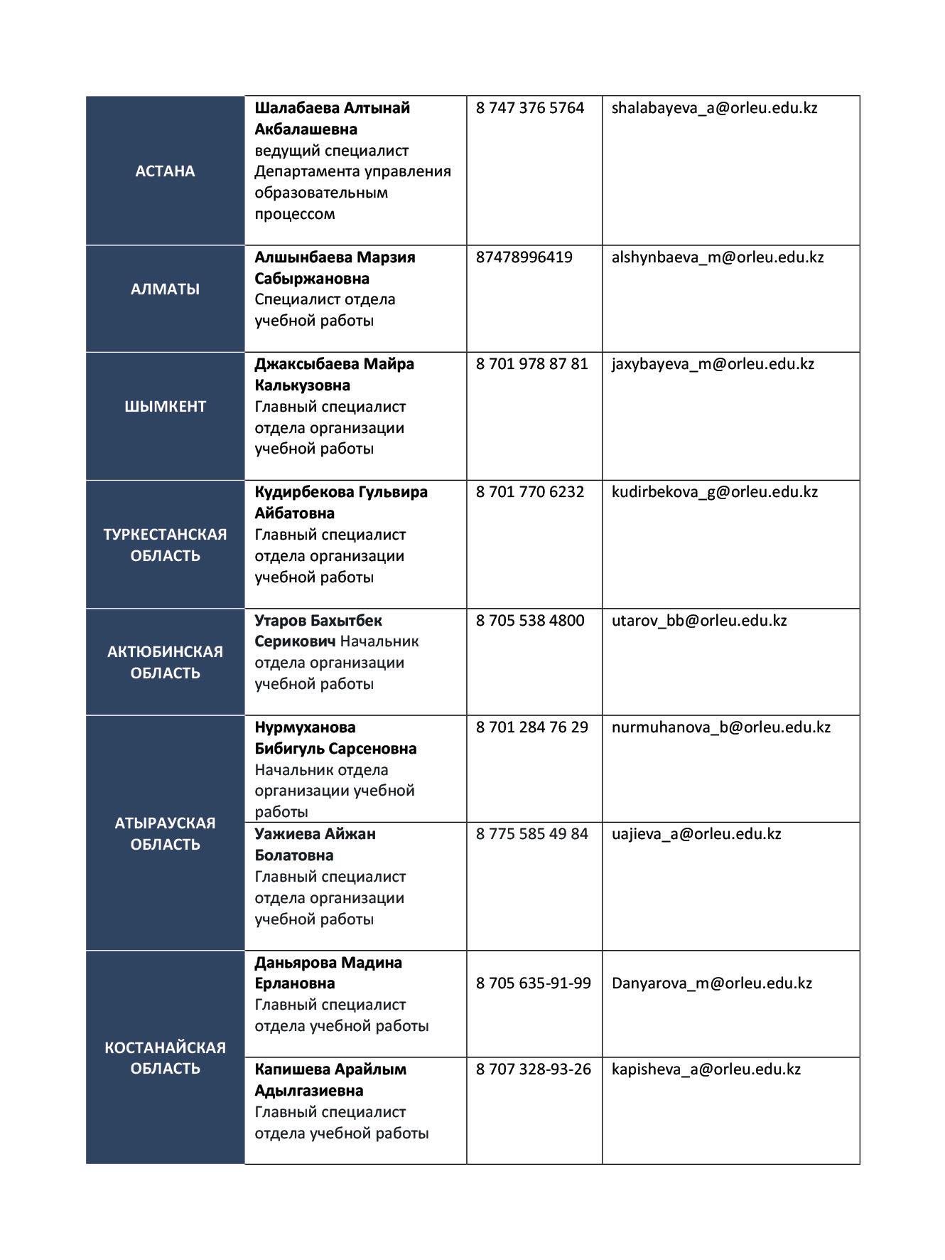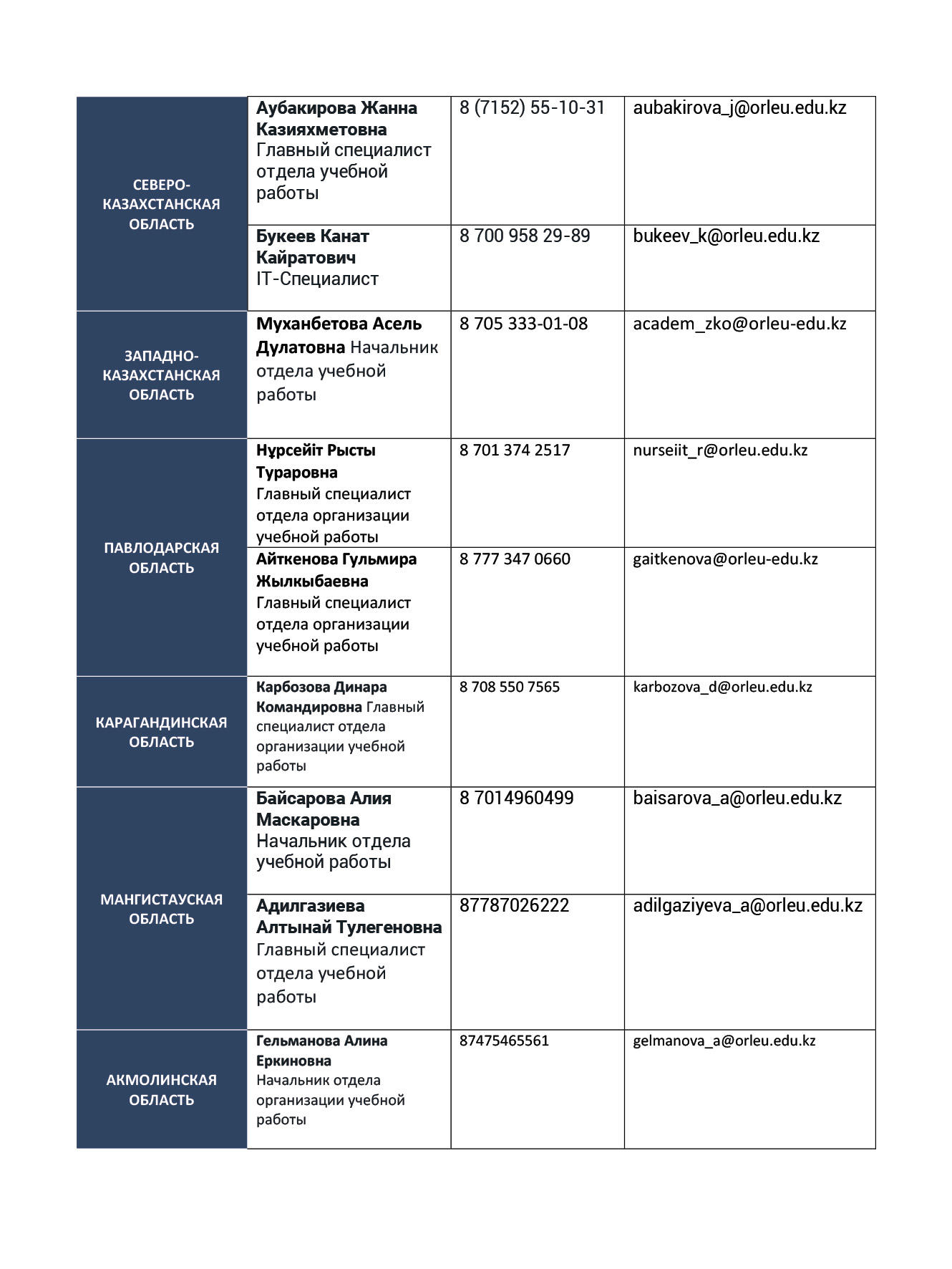 Біліктілікті арттыру курстары бойынша «Өрлеу» байланыс орталықтары