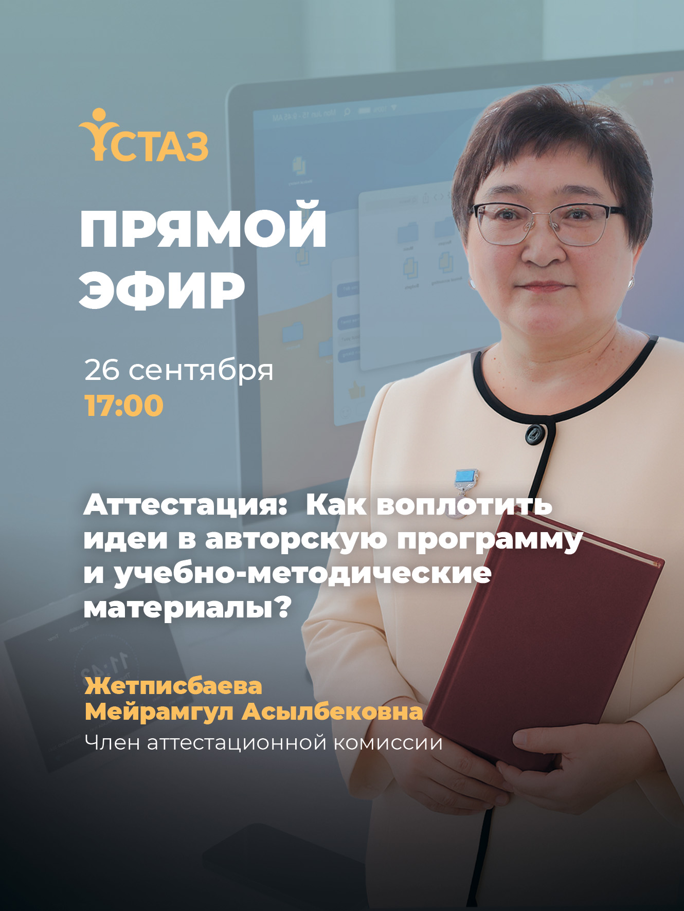 В эфире состоится интервью с членом аттестационной комиссии Жетписбаевой Мейрамгул Асылбековной. Ждём вас на официальной странице «Өрлеу» в Instagram — @orleu_official.