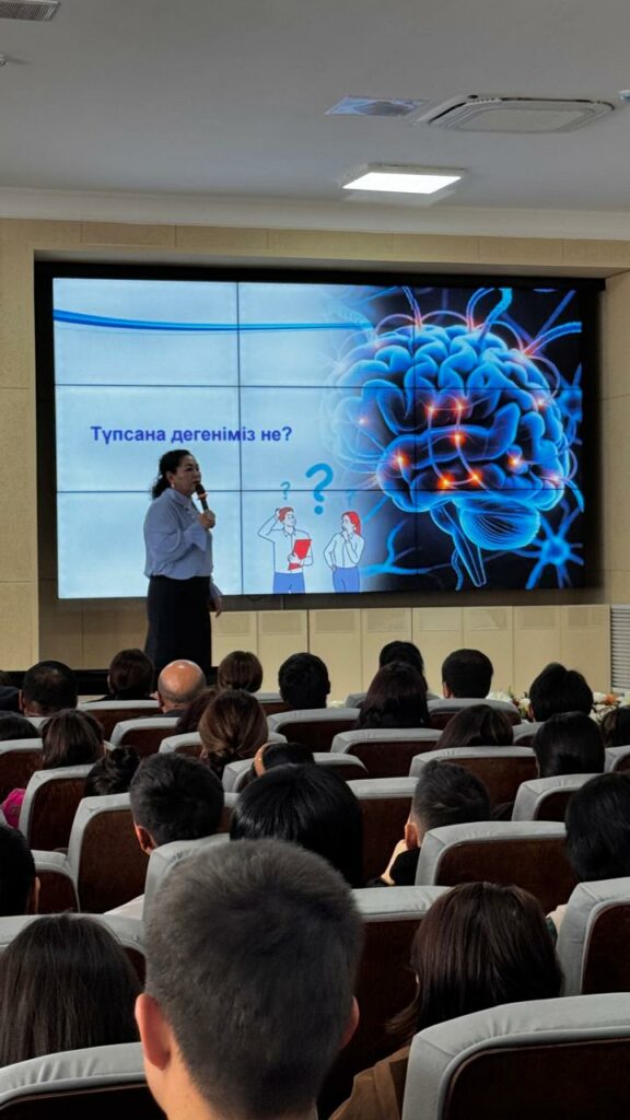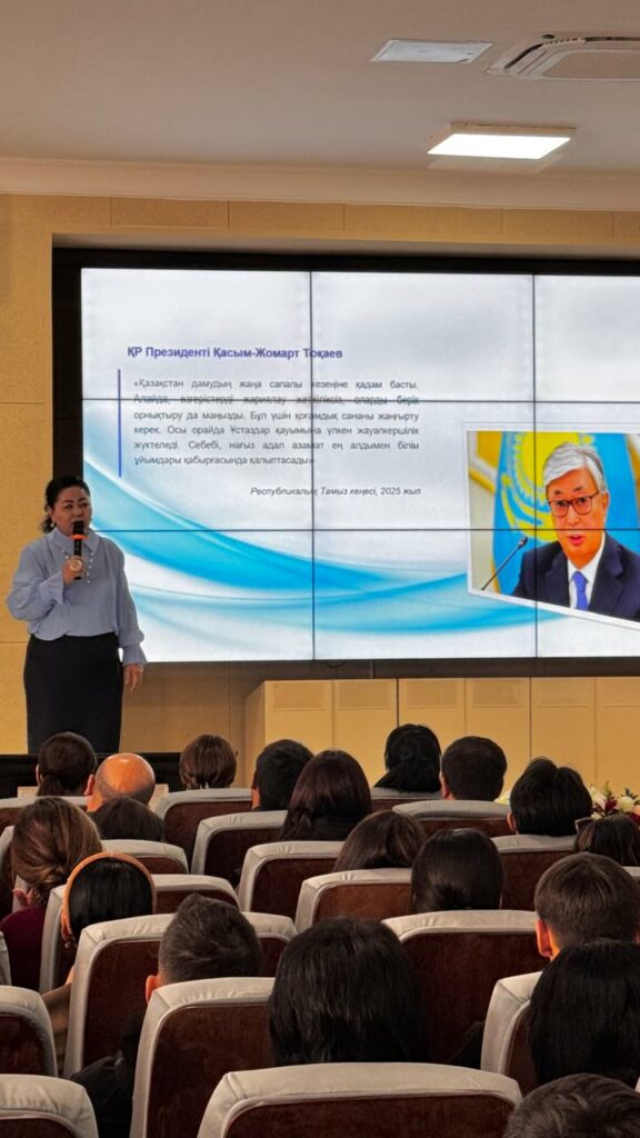 «Педагогика және психология» кафедрасының меңгерушісі, п.ғ.д., профессор Искакова Лаура Турлыбековна «Сапалы білім мен саналы тәрбие құндылықтарын кіріктірудің педагогикалық аспектілері» тақырыбында баяндама жасады.