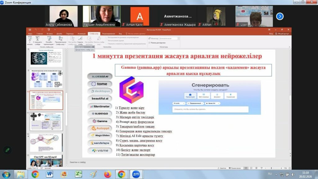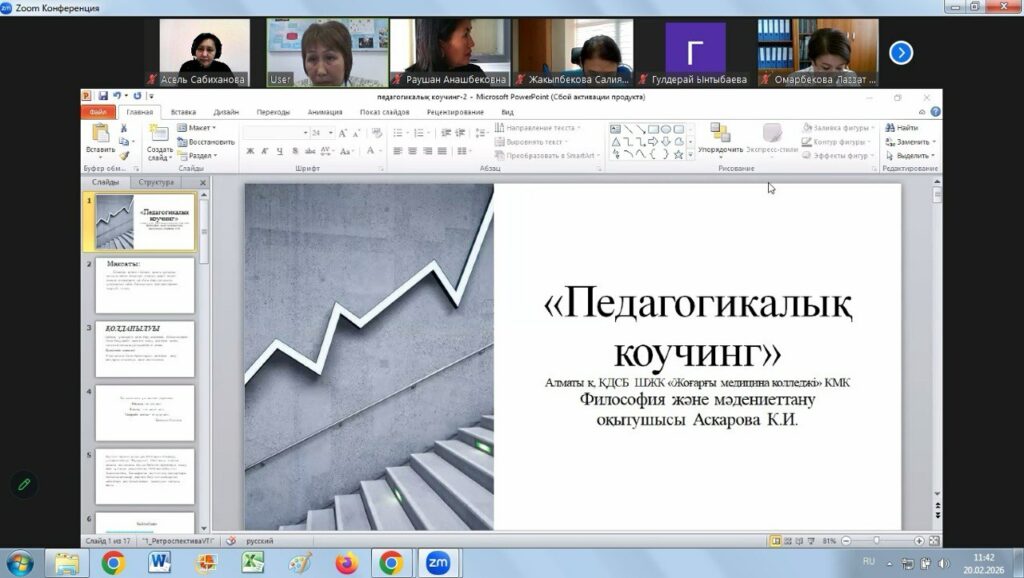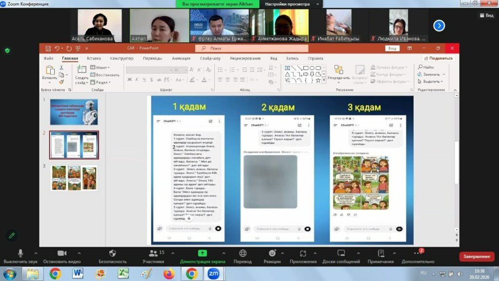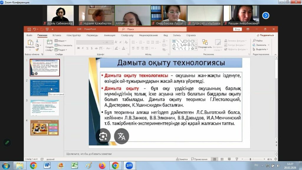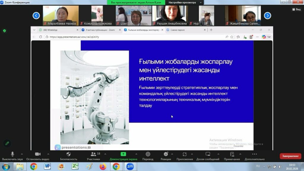 2026 жылғы 19–20 ақпан күндері «Өрлеу» Біліктілікті арттыру ұлттық орталығы» АҚ Алматы қаласы бойынша филиалында «Іс-әрекетті зерттеу, жинақтау және тарату» тақырыбында республикалық семинар ұйымдастырылды. Іс-шара «Жаратылыстану-математика бағытындағы» кафедра оқытушыларының педагогтерге арналған семинарларды (онлайн/офлайн) әзірлеу және өткізу жоспарына сәйкес өткізілді. Семинарды кафедраның аға оқытушысы А.К. Сабиханова ұйымдастырды.