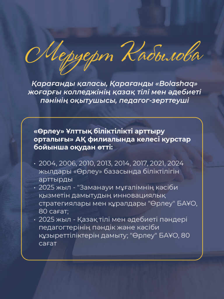 Биыл «Үздік педагог – 2025» атағына ие болған 64 мұғалімнің дені кәсіби біліктілігін бұған дейін «Өрлеу» біліктілікті арттыру ұлттық орталығында жетілдірген.