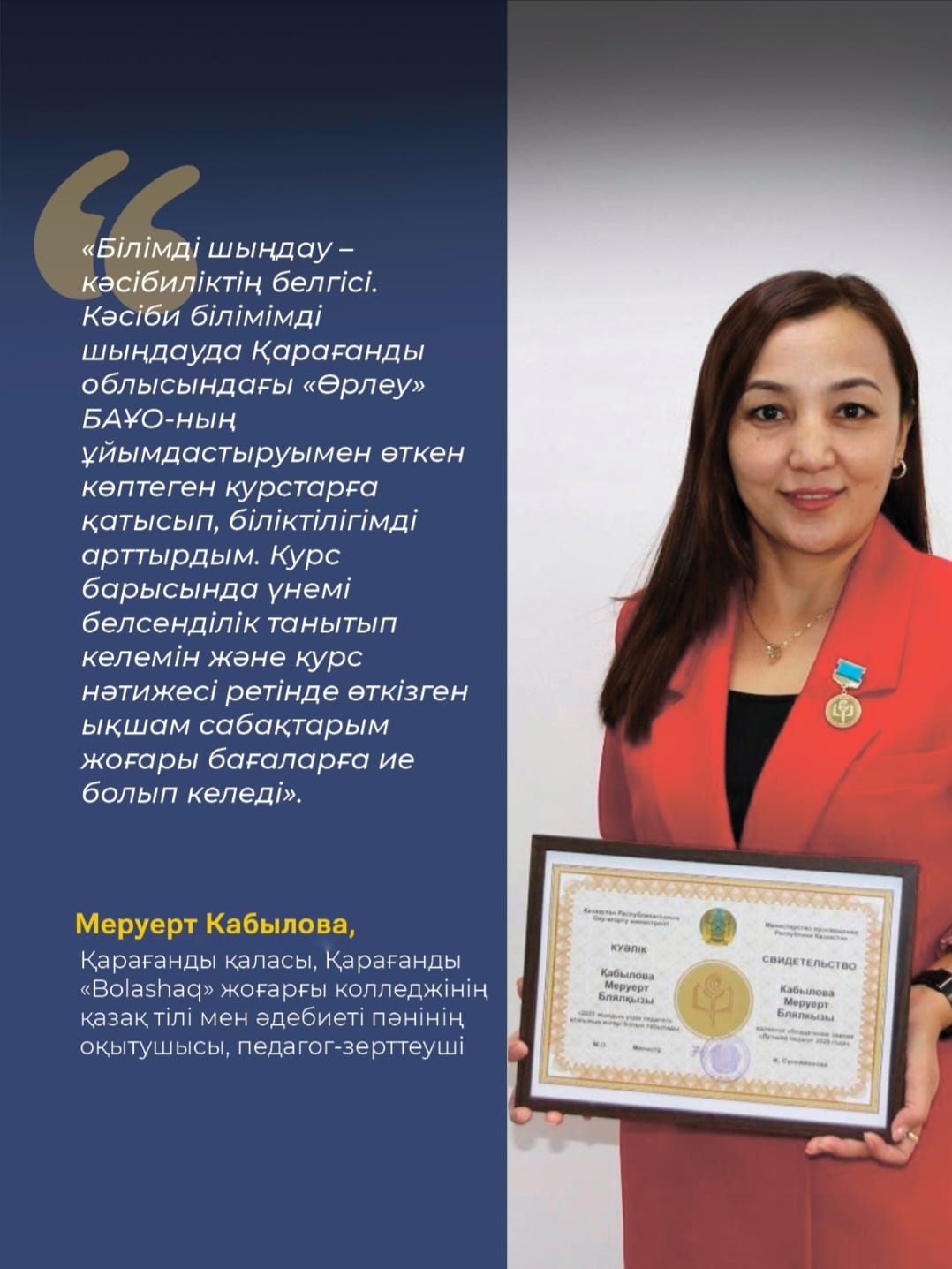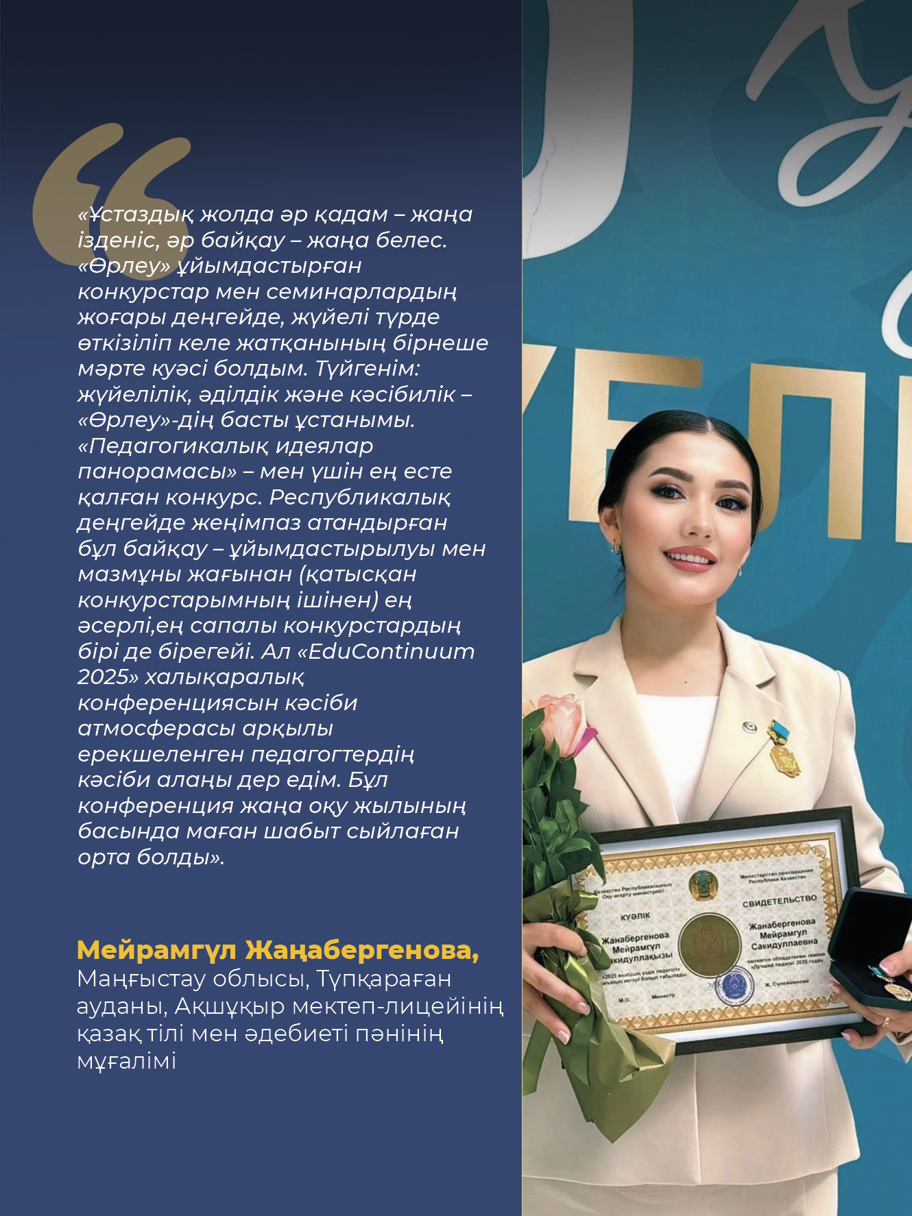 Биыл «Үздік педагог – 2025» атағына ие болған 64 мұғалімнің дені кәсіби біліктілігін бұған дейін «Өрлеу» біліктілікті арттыру ұлттық орталығында жетілдірген.