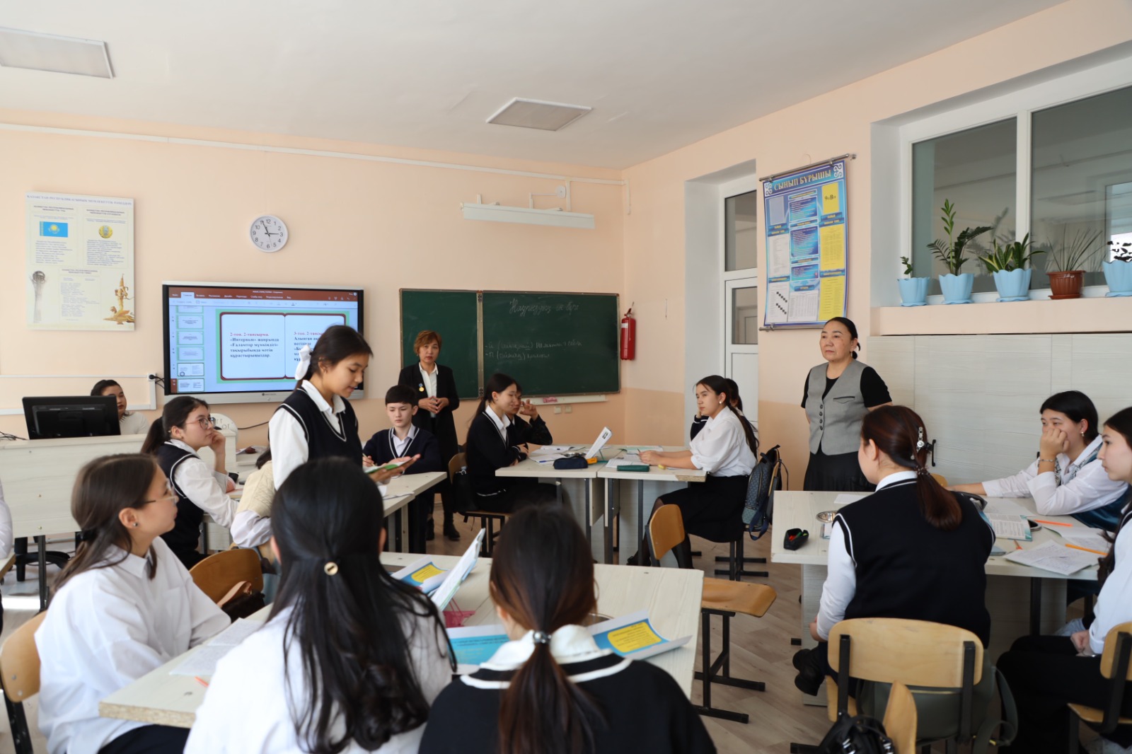 №2 мамандандырылған үш тілде оқытатын мектеп – интернаты мен «Өрлеу» БАҰО» АҚ филиалы Түркістан облысы және Шымкент қаласы бойынша Кәсіби даму институты бірлескен жұмыс жоспары негізінде біраз уақыттан бері тығыз байланыс жасап келеді. Әсіресе, қазақ тілі мен әдебиеті пәні мұғалімдерімен байланыс жақсы жолға қойылған. Институт қызметкерлері тарапынан өз кезегінде әдістемелік көмек беріліп отырса, мектеп интернаты педагогтері тарапынан курс тыңдаушыларына практикалық сабақтар көрсетіліп, түрлі деңгейдегі түрлі шараларға өздерінің баяндамаларымен институт жұмысына үлестерін қосып келеді. 12.03.2024 жылы «Ашық есік» күні шебер ұстаз Галиева Майра Өсенқызы мақсатқа сай жұмыс жасайтын ҚМЖ жоспарлауға арналған шебер сынып өткізді. Қазір тоқсан аяғы, қайталау сабақтары басым кез. Қайталау сабағы мен жаңа сабақты біріктірген аралас сабақтың әдемі үлгісін көрсетті. Педагогтің шеберлігі алдыңғы сабақтарда жұмыс жүргізілген мақсаттарды бір тапсырмада оқушылардың оларды толық игеріп, қамтылған алты мақсаттың аясындағы қабылеттері мен дағдыларды көрсете білгенінен анық байқалды. Жаңа білім мен жаңа дағдыларды дарытуға арналған келесі мақсатты жүзеге асыруға арналған келесі тапсырманы да шеберлікпен үйлестіріп, бір тапсырма арқылы әр түрлі жанрдың 5 түрлі тармағына арналған жазылымның жарық көруін көруімізге куә етті.