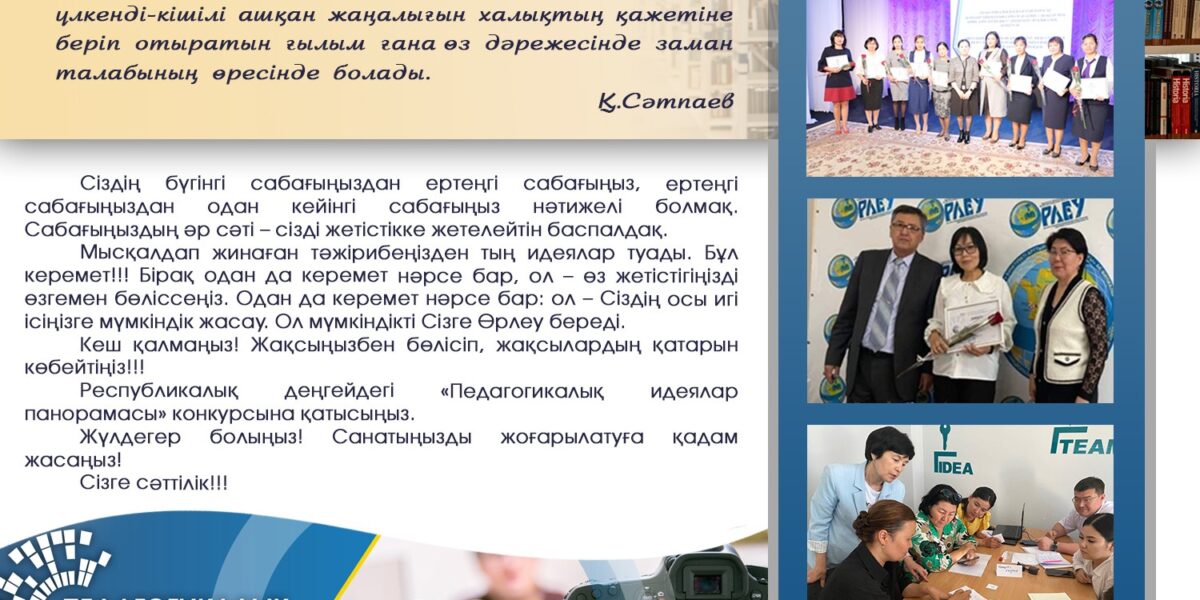 ПодробнееСостоялась встреча директора филиала Өрлеу по Мангистауской области Э.Калиевой со слушателями предметных курсов повышения квалификации. На встрече педагоги получили ответы на важные вопросы:Какие эффективные обучающие методики и инструменты получат педагоги на предметных курсах?Как трансформируются профиль педагога и набор компетенций?Какие возможности непрерывного профессионального развития представлены современным учителям?