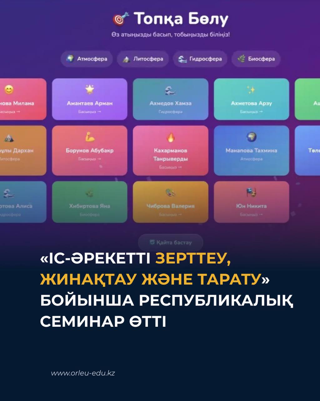 2026 жылғы 19–20 ақпан күндері «Өрлеу» Біліктілікті арттыру ұлттық орталығы» АҚ Алматы қаласы бойынша филиалында «Іс-әрекетті зерттеу, жинақтау және тарату» тақырыбында республикалық семинар ұйымдастырылды. Іс-шара …